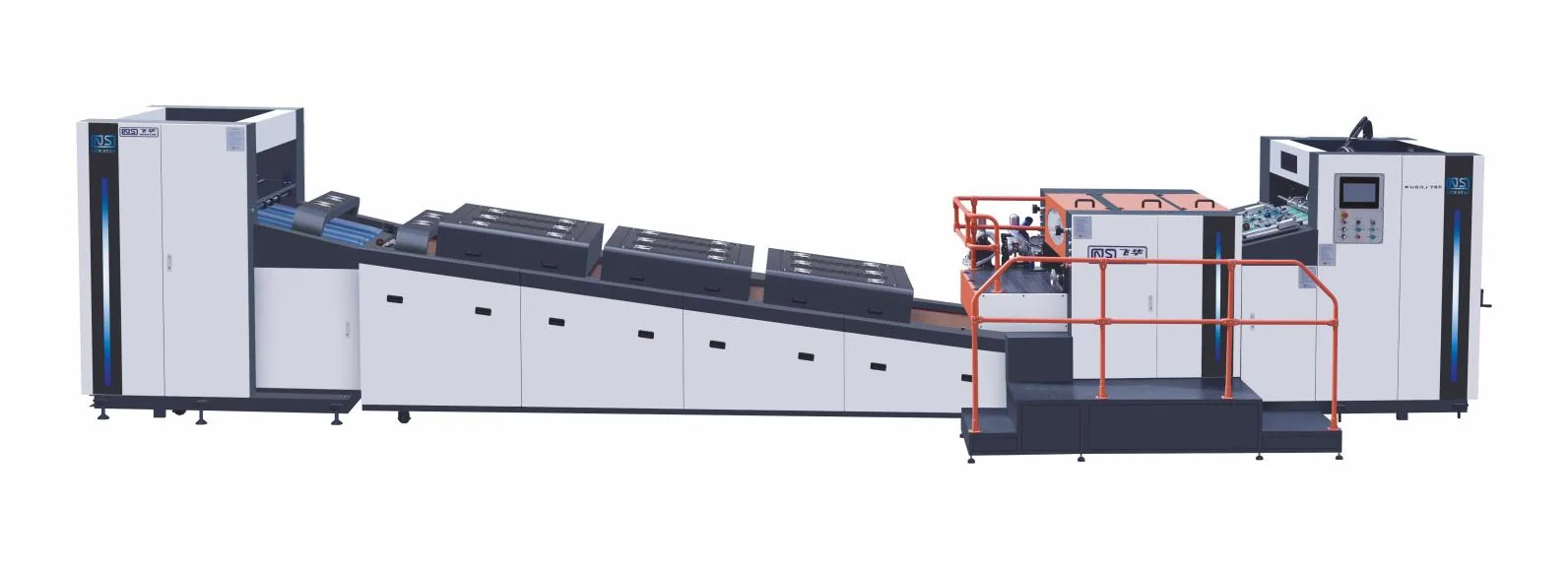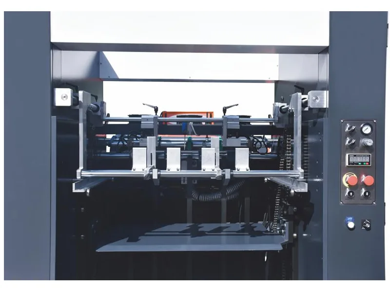 - Bi aldeetako paper-maila pneumatiko fotoelektrikoa eta paper sendoa laua eta motela; Paper lodiaren inertzia saihesteko tarteko gailua; Sormen ertaina papera leun eta txukuna jasotzeko.